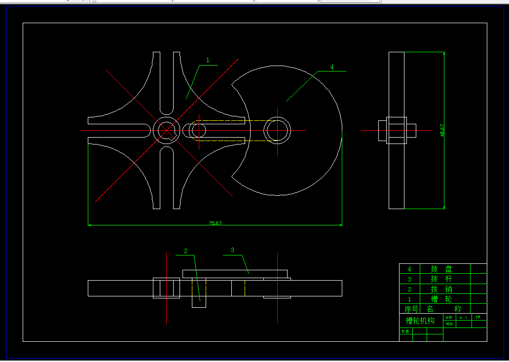 槽轮机构是一种步进间歇运动机构,由于结构简单、制造容易、工作可靠,能准确地控制转角, 机械效率高, 所以在自动和半自动生产线中得到广泛的应用;但槽轮在销轴进出槽轮槽口时加速度大,机构产生较大的冲击,而且随着转速的增加和槽轮槽数的减少冲击加剧,因而不适用于高速运转的情况。