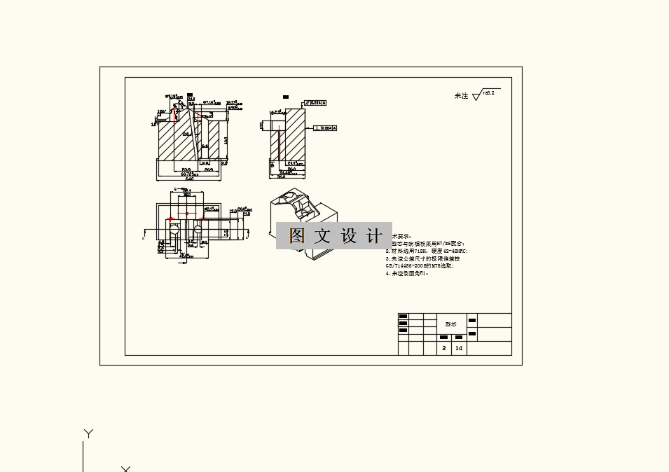 本课题对打印机内三角支盖进行了注射成型模拟分析和成型模具设计。本塑件选择的材料为 ABS,它的内部结构有一个内抽结构,外部也有一个抽芯结构。一开始先运用 软件对塑件进行 1:1 建模,然后在导入到 Moldflow 中对其进行充填、保压、翘曲等一系列分析,再由此来确定本塑件的浇注系统和冷却系统方案;之后根据塑件的结构工艺性进行分析来确定模具分型面、型腔数量;本次采用海天天翔 SA 600/100u A 型注射机;在接下来确定成型零部件的结构和推出机构的方案,并完成模具总装结构图。本次设计采用一模两腔、侧浇口、斜导柱抽芯、斜推杆抽芯结构。