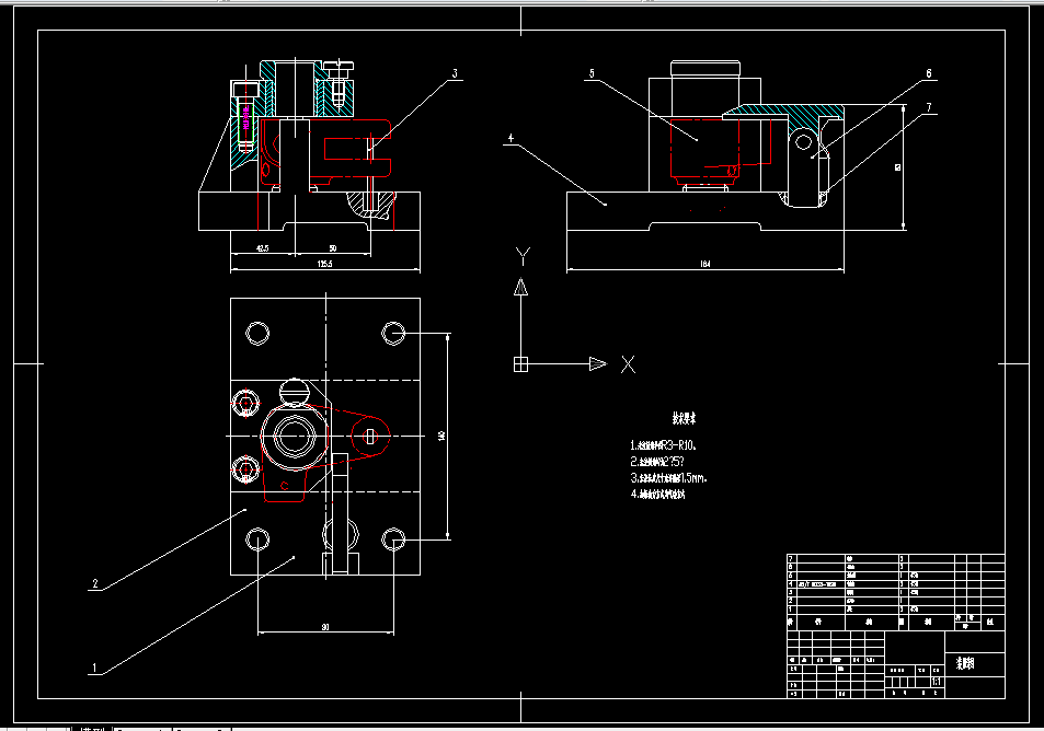 本设计是基于手柄座零件的加工工艺规程及一些工序的专用夹具设计。手柄座零件的主要加工表面是平面及孔系。一般来说,保证平面的加工精度要比保证孔系的加工精度容易。因此,本设计遵循先面后孔的原则。并将孔与平面的加工明确划分成粗加工和精加工阶段以保证孔系加工精度。基准选择以手柄座的孔作为粗基准,以结合面与两个工艺孔作为精基准。主要加工工序安排是系定位加工出工艺孔。在后续工序中除个别工序外均用顶平面和工艺孔定位加工其他孔系与平面。夹具选用专用夹具,夹紧方式多选用手动夹紧,夹紧可靠,机构可以不必自锁。因此生产效率较高。适用于大批量、流水线上加工。能够满足设计要求。