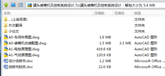 我设计的装箱机采用气动装置来实现动作。主要包括搬运系统、吸盘、控制部分,装箱机的上下移动由双作用气缸控制,左右移动取决机构的来回运动,罐头的吸取和放松靠真空吸盘的动作来实现的。机构的运动使装箱精度更准确且方便可调。在装箱机的工作过程中,气缸采用调速阀进行调速,整个的运动过程比较平稳,便于各个位置精确的定位,有效的进行装箱。