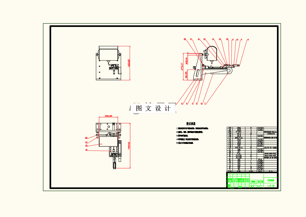 针对客户定制需要而开发的一款对接线端子进行压弯打标的设备,具有压弯、检测、打标等主要功能。首先,通过采用旋转气缸提供的扭矩(待定),实现针 脚的压弯。其次,对接线端子进行导通测试来检测产品的合格与否。合格的产品 通过送料装置输送到下一个模块,通过气动打标机在产品表面刻上产品编号等。而将不合格的产品通过排料装置送到废料区。该结构运动稳定,结构紧凑且性价 比好。 在总体方案设计中采用模块化设计理念、首先根据产品需求来分析整体运动机构的组成模块以及各模块的运动原理以及功能。采用以旋转气缸提供的扭矩对针脚进行压弯、通过导通测试检测产品的合格率、采用送料排料机构将接线端子送到各指定位置进行相应的功能操作,并将未通过导通测试的产品送到废料区, 并采用气动打标机刻上产品编号。确定由压弯、检测、送料排料、打标四个模块组成。