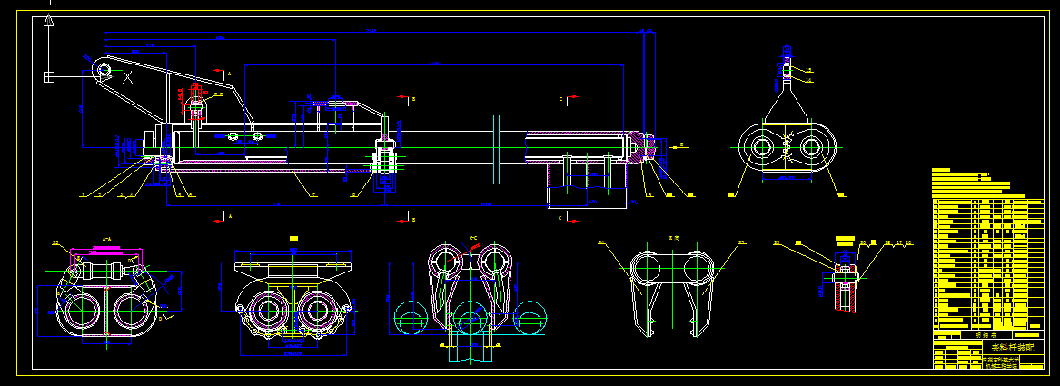 Ф35m加热炉出料机械手设计主要是针对包钢无缝钢管厂Ф35m环形加热炉进行的设计。其工作原理是:由液压马达带动行走小车在机架上做水平直线运动,并带动夹料杆至加热炉前,再通过升降驱动液压缸驱动同步摆杆机构使夹料杆完成升降运动,最后通过旋转用液压缸驱动夹料杆旋转完成夹料工作。
