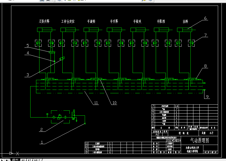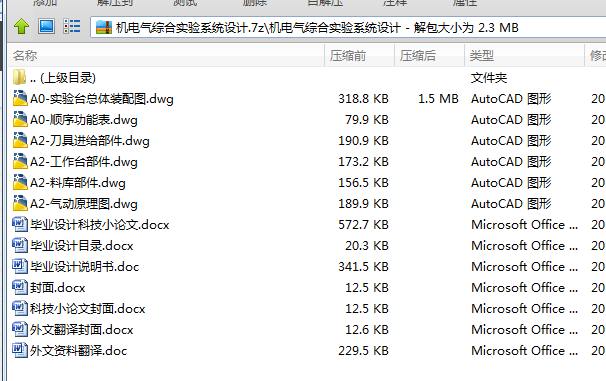 本次设计的机电气综合实验系统,是通过对该实验台模拟的生产线的工艺流程、气动回路和PLC基本工作原理等的深入了解基础上。运用所学的知识和查阅大量的相关资料对机械部分、气动部分、控制流程进行合理的设计及传感器、气缸等元件的合理选择,并进行了PLC编程。