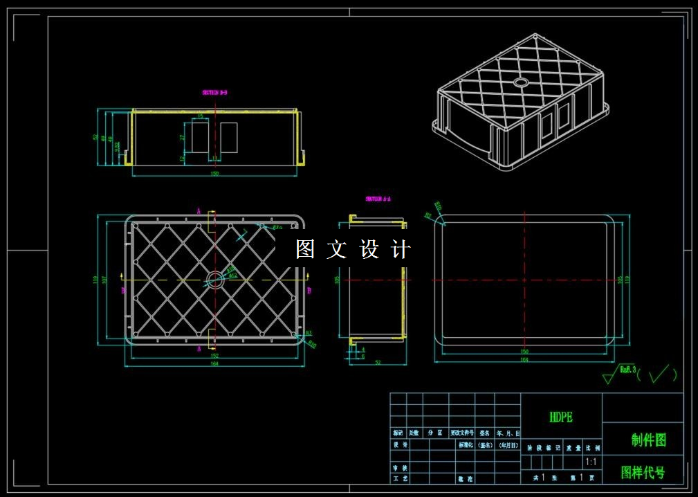 该设计主要通过对塑件的结构形状及尺寸精度,成型要求来进行的注塑成型工艺的分析,并完成注射模具的设计。该设计需要通过分析的成型工艺包括:PVC塑料的成型特性,塑件的结构特点,表面粗糙度以及脱模的分析要求,以此来确定注射机的选用、型腔的数目、分型面的位置、浇注的方式、分流道的设计、脱模方式等。该次设计的难点是需要进行滑块侧向分型分析,而且是一模四腔的设计,分析确定结构。最后要完成完整的一套模具设计总图,包括成型部分,合模导向机构,推出机构,侧向分型抽芯机构等。设计过程包括了对成型零件的各种计算,抽芯机构的校核计算等。
