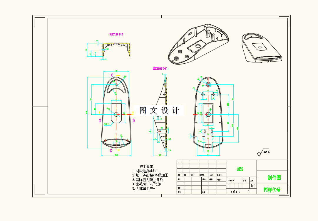 本次设计的题目是多功能鼠标底座注塑模具设计,通过UG建模绘制塑件的三维图形进行分析,结合设计要求和实际生产确定模具的结构形式。首先分析塑件的分型面,在选择塑件的分型面时要保证便于脱模,塑件的分型面一般选择最大平面,保证塑件外观光滑,减少痕迹。塑件的材料选用要根据塑件在实际生活中的应用,所选择的材料要满足塑件在使用过程中的要求。然后是对出模数量的确定,出模数量要根据模具设计原则来进行确定,参考实际生产中的要求采用一模四腔。型腔布局时多采用整齐排列的方式进行排列布局,这样的结构更加的简单,实际生产中多数使用的就是这样的布局方式,更加的稳定可靠。浇口的设计也是本次设计当中的重点,浇口位置的选择非常的重要,在设计时浇口的位置要尽量的靠近塑件的中心,保证充填的均匀,在遇到塑件过长过大的时候,就需要考虑增设浇口的数量。