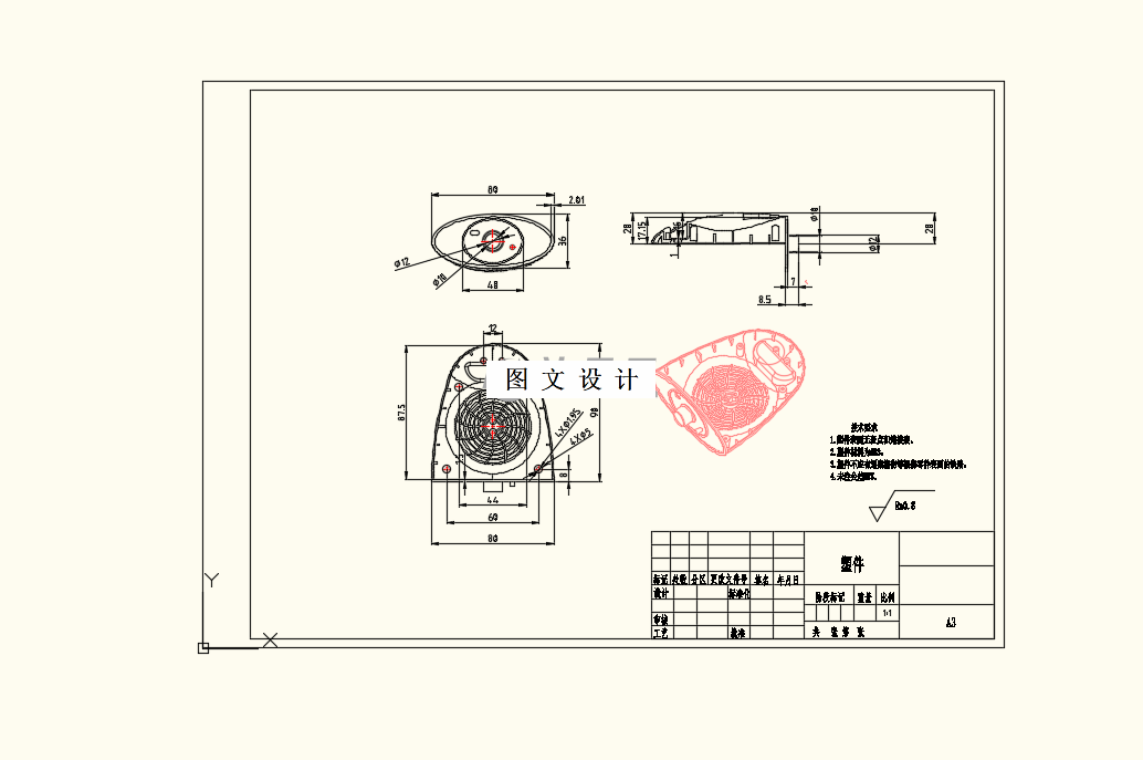 电暖扇外壳主要使用ABS工程塑料,耐热和耐腐蚀性好,且表面硬度高,用途广泛。电暖扇外壳形状复杂,壁厚设计要均匀,减少气泡等缺陷产生;设计拔模倾斜角, 方便部件分离;故设计为整体式。在 Moldflow 注射模拟中,进行网格划分、型腔布局、冷却、保压、翘曲等分析,同时,合理设计冷却管道,注塑管道。在成形零件设计中, 型芯与型腔设计为整体式,计算其长度、宽度、深度等尺寸,并进行材料热处理,具备符合要求的洛氏硬度。对侧抽芯设计计算里,需要计算抽芯距和抽芯力,依据国家标准, 设计斜导柱,滑块,楔紧块,注意热处理工艺与表面硬度要求。在冷却系统的设计里, 计算电暖扇外壳冷却释放的热量,体积,管道直径,数量,总传热面积和流速。