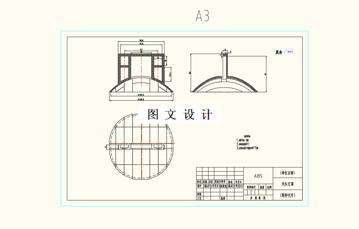 本次毕业设计的题目是汽车灯罩的注塑模具设计,通过查阅资料,确定了本次设计的流程和需要完成的操作。 1.对产品的分析,(具体包含产品的结构特点和成型特点,对产品进行三维建模,选取适合产品的注塑材料) 2.注射设备的选取,(根据完成产品需要的塑料凝料的总量和模具大致的高度来进行注射机的初步选取) 3.模具整体结构的设计,(分型面的选取,型腔的排布,成型零部件的设计与计算,模架的选取,主流道,分流道,浇口的设计,导向机构,推出机构,排气系统和冷却系统的设计) 4.装配图的绘制,(对完成整个注射流程的各个系统进行整合之后,绘制模具整体装配图) 5.注射机的校核,(根据装配图来对初选的注射机进行各个方面的校核,包含模具高度,总的注射量,模具的锁模力和开模时的高度等方面的校核)