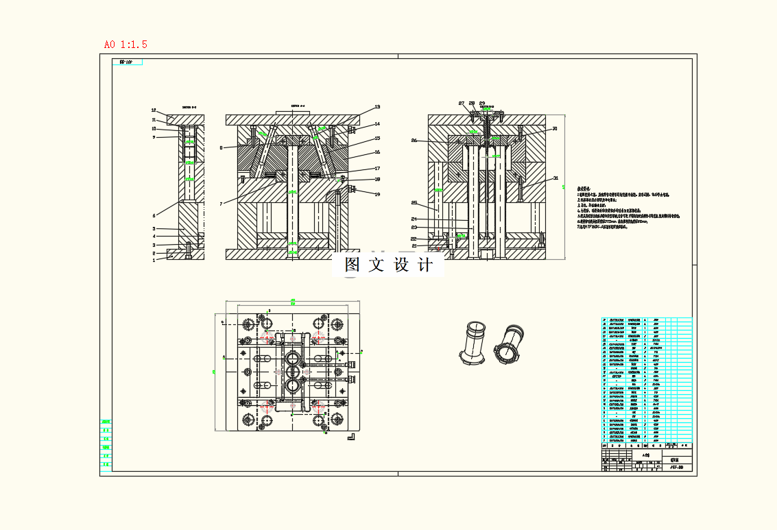 注射成型是热塑性塑料的主要成型方法。本文课题生活中零件进水阀外壳部件,本次设计是关于一种进水阀液位计外壳的注塑模具设计及其计算校核。运用软件进行建模,针对塑件的结构特点,分析确定了塑件的注塑成型模具结构总体方案,包括确定合适的分型面和模具开合动作机构方案。从模具结构总体方案出发,进一步设计型腔结构、浇注系统、冷却系统、脱模机构、斜推杆内侧分型抽芯机构等,以及必要的校核计算。绘制模具零件图,选择各个模具零件的材料。通过锁模力的计算和校核确定了注塑机的型号。最后介绍了模具的工作原理,并结合测量数据测量进行计算和校核。