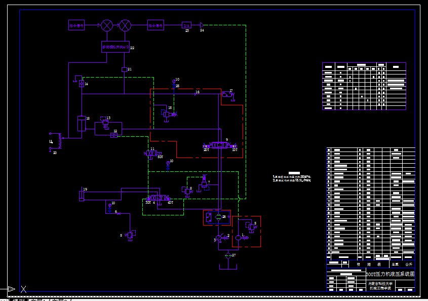 其次,详细地阐述了液压机液压系统的原理和设计。从工况分析到确定系统的主要参数,重点设计了液压系统图及液压缸主缸(包括主要尺寸、活塞和活塞杆、缓冲装置、排气装置等)。在这些设计的基础上,选择了液压元件及对系统进行验算。