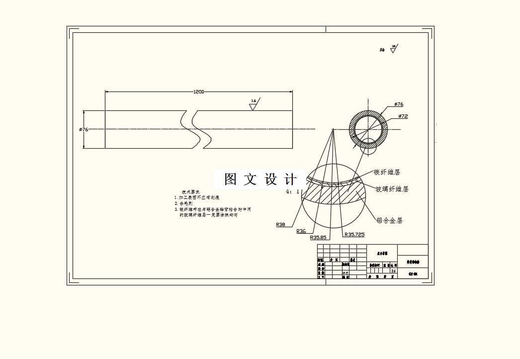 本设计旨在探讨不同材料制作成的传动轴各自的优势和不足之处,本设计一共对比了三种不同的材料制作成的传动轴,分别是45钢,AL6061-T6铝合金以及以AL6061-T6铝合金为基体材料添加碳纤维层的三种传动轴。同时,为了方便三者之间的对比,三种材料制作的传动轴所采用的图纸完全一致。
