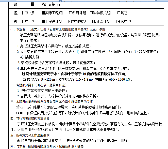 关键词:掩护式液压支架;四连杆机构;立柱; 液压系统