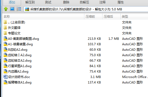 本册说明书所介绍的是采煤机截割部的设计。