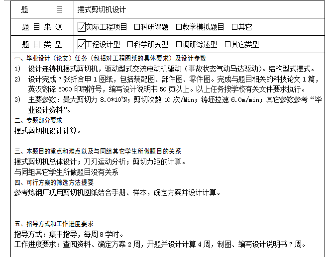 通过以上工作,本次毕业设计作出了一种结构较为完整的摆式剪切机。
