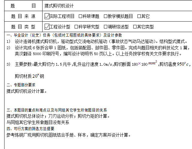 通过以上工作,摆动剪切机在使用寿命、产品质量理论上应该有一定的提高。设计内容有实际价值。该剪作为加热炉前方坯切头飞剪。