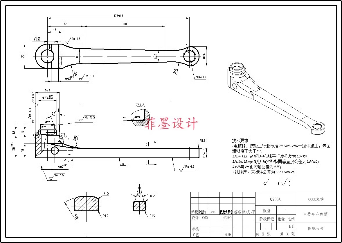 M8834-自行车右曲柄工艺及钻孔夹具设计【含SW三维图】 下载积分:100 资料编号: M8834