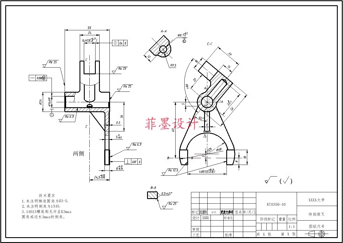 M9016-快挡拨叉加工工艺及铣槽夹具设计【含SW三维图】 下载积分:150 资料编号: M9016