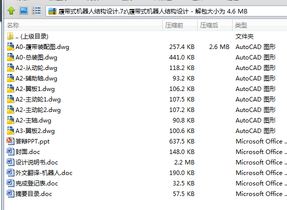 此设计的目的设计结构新颖,能实现过坑、越障等动作。通过在机器人机架上加装其他功能的模块来实现不同的使用功能,本研究的意义是为机器人提供一个动力输出平台,为开发各种功能的机器人提供基础平台。