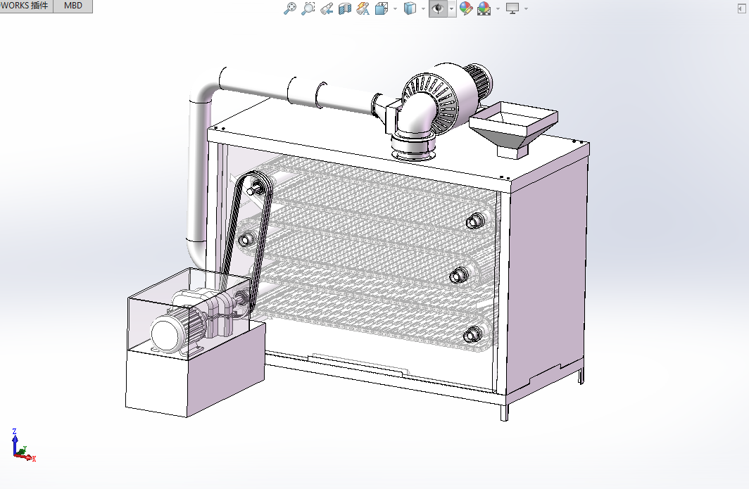 随着生活水平的提高,改进传统生产技术,研究开发适宜辣椒产地的先进清洗制干技术与装备,应用新型工艺生产出高品质的辣椒干,为当前辣椒干产业发展之急需。本次毕业设计的选题来源于生产实际,针对辣椒烘干过程费时费力问题设计制造一款辣椒烘干机。本文设计完成的主要内容如下:详细介绍了辣椒清洗烘干机的基本特点和相关知识内容,通过收集汇总各种文献书籍,阐述其发展历史和已取得的技术成果;结合生产实际,基于辣椒烘干机的相关参数,总体设计辣椒清洗烘干机的结构方案,并对实现其功能的有关机构进行设计;对设计所得辣椒清洗烘干机的基本工作原理进行阐述,介绍设备的工作流程;对辣椒清洗烘干机的驱动机构进行设计,并对它的相关设计参数进行校核计算,确保设计的辣椒烘干机具有足够的刚度以及强度,能够满足实际生产的需求。