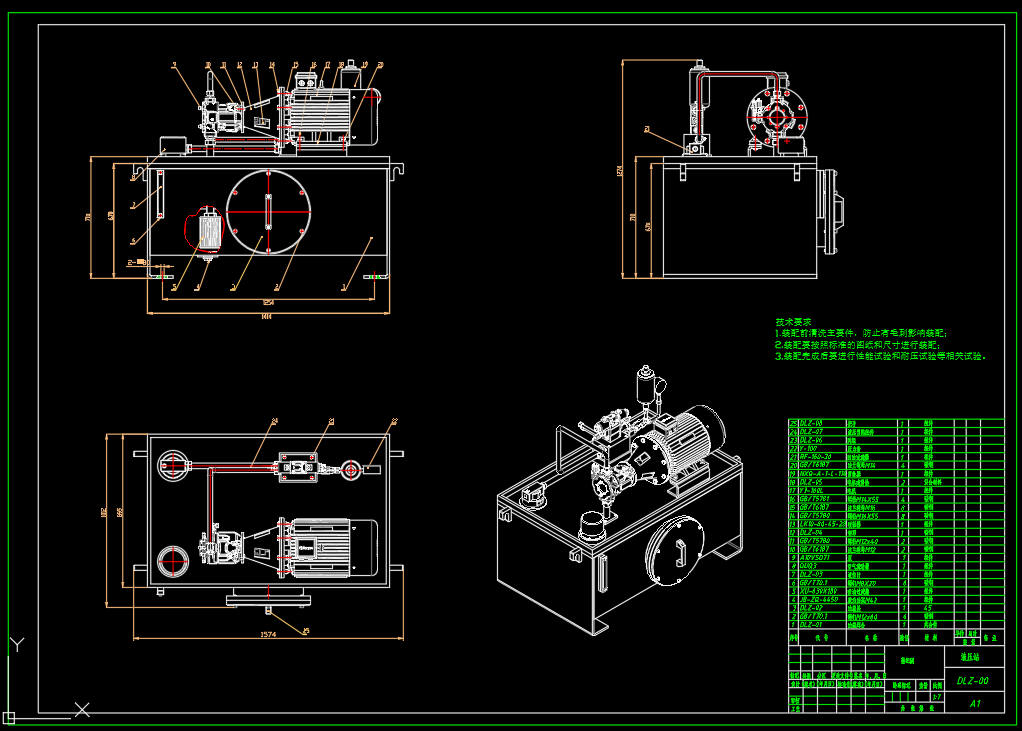 本文设计的是一种新型液压动力站液压系统的设计,包括了液压系统原理图的设计及绘制、液压系统参数的计算、液压元件的选型、能量损失验算、热平衡验算、油箱设计、集成块设计等。首先,确定整个回路的压力和流量要求,根据参数范围,进行计算选型液压泵,液压泵选型完成后根据液压泵的相关参数计算选型所需电机的功率,进行电机选型,然后在进行整个系统中其他元器件的选型。整个动力站液压系统由一个液压泵单独供油,实现了一定范围的压力油的供给,经过电机带动实现给系统供油,系统经过管路连接各液压元件,实现整个液压系统的功能。