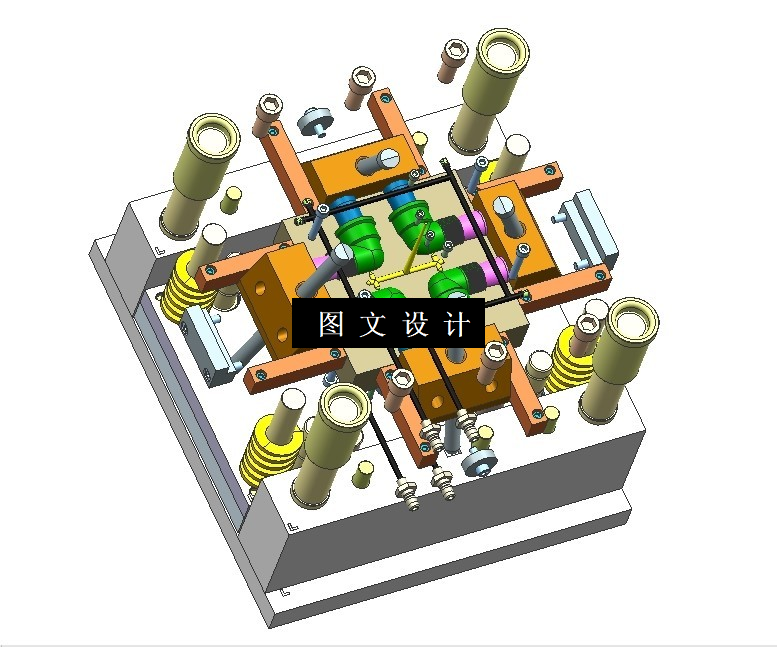本次设计的产品为带螺纹90°弯管,具有重量轻,强度高,耐腐蚀,易清洁等 特点,为大批量生产产品。本次设计在针对产品进行工艺性分析后,确定模具分 型面、 型腔数目、 浇口形式、 位置大小; 其中最重要的是确定型芯和型腔的结构, 以及它们的定位和紧固方式。此外还进行了脱模机构的设计,合模导向机构的设 计,冷却系统的设计等。最后绘制完整的模具装配总图和主要的模具零件图及编 制成型零部件的制造加工工艺过程卡片。实践证明:该模具结构合理、可靠,并 能保证产品质量,对此类注射产品的模具设计有参考价值。