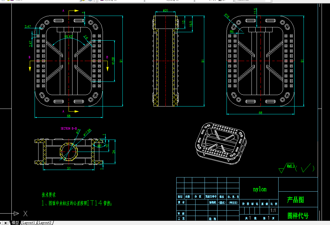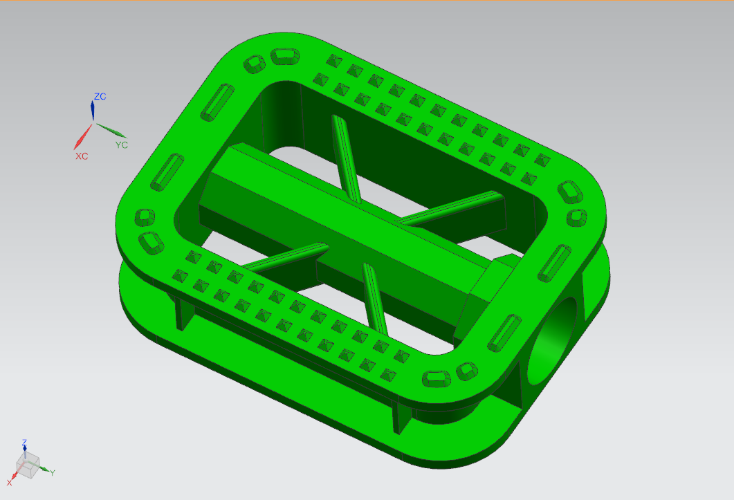 本文是关于自行车踏板注塑模具的设计,塑件虽然不是很复杂,但其设计的难点在于侧向抽芯机构和浇注系统的设计。本次设计主要使用UG8.5软件,结合生产实践来设计自行车踏板注塑模具的整体结构,通过对塑件形状、尺寸等方面的分析来确定其工艺。主要包括分型面的选择,浇注系统的设计,成型零件的计算,侧向抽芯机构的设置,顶出机构和冷却系统的设计等,此外还对其脱模力进行计算,并选择合适的注塑机。本次设计使用UG8.5,胡波外挂来进行模架、螺钉、顶杆等零件的选取,设计安装完成后,直接导出2D装配图及相关零件图,大大缩短了设计时间。