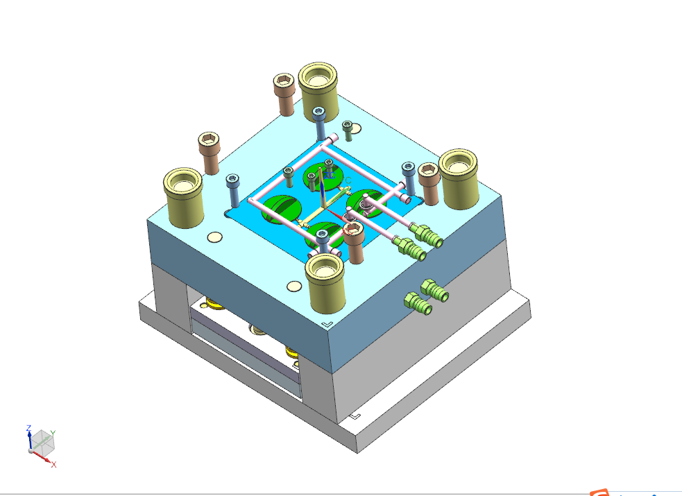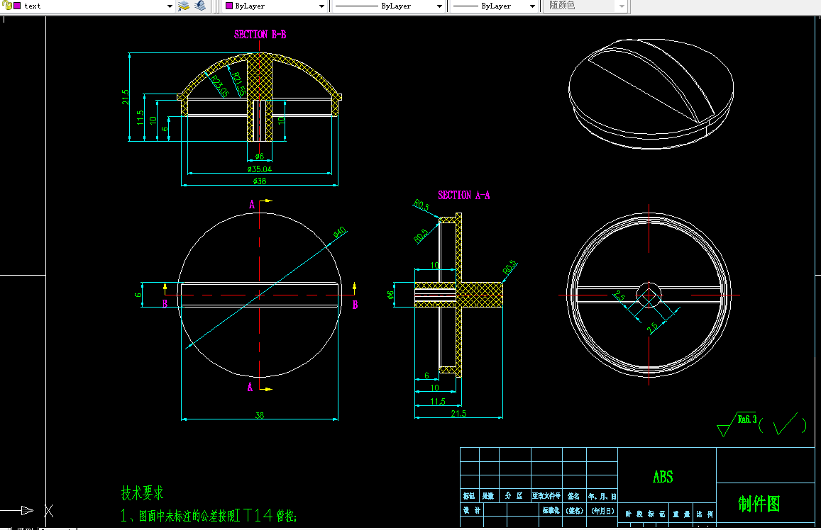 塑料是一种可塑性的合成高分子材料,具有重量轻且坚固,耐化学腐蚀, 电绝缘性好,价格便宜,可塑性好等特点,广泛应用于电脑、手机、汽车、电机、 电器、家电和通讯产品制造中。 注射成形是成形塑件的主要方法之一, 是指使用注射机将热塑性塑料熔体在 高压下注入到模具内经冷却固化获得产品的方法。注射的优点是生产速度快,效 率高,操作可自动化,能成型形状复杂的零件,特别适合大量生产。 本次设计的产品为旋钮塑件,具有重量轻,强度高,耐腐蚀,易清洁等 特点,为大批量生产产品。本次设计在针对产品进行工艺性分析后,确定模具分 型面、 型腔数目、 浇口形式、 位置大小; 其中最重要的是确定型芯和型腔的结构, 以及它们的定位和紧固方式。此外还进行了脱模机构的设计,合模导向机构的设 计,冷却系统的设计等。最后绘制完整的模具装配总图和主要的模具零件图及编 制成型零部件的制造加工工艺过程卡片。实践证明:该模具结构合理、可靠,并 能保证产品质量,对此类注射产品的模具设计有参考价值。