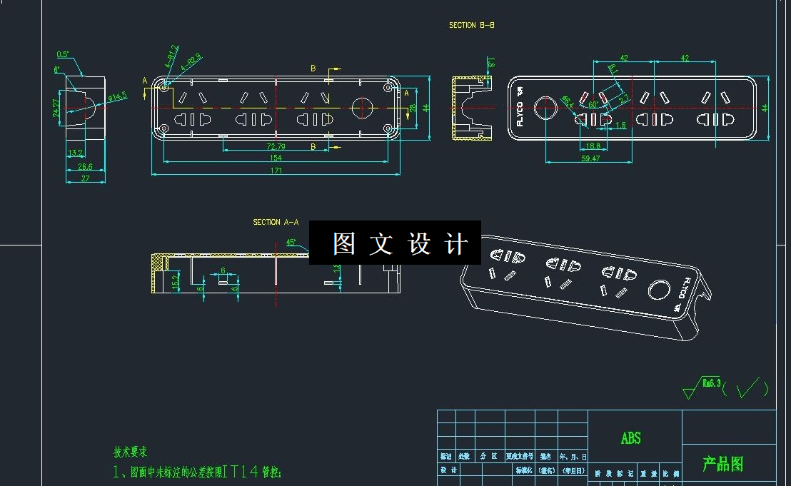 本文设计针对对插座上盖塑件产品设计制造专用注射模具,由于插座上盖塑件产品是日常常见品,在生产实际中的使用量相对较大,设计制造相应的注射模具具有较好的应用价值。结合插座上盖塑件的实际实现要求,可知其需要具备足够高的强度,还需要具备柔韧性,综合研究分析各种不同材料的力学综合性能,最终选用性能较为优良的ABS塑料材料注射成型加工生产插座上盖塑件产品。在设计本文注射模具过程中,首要研究分析插座上盖塑件产品的结构形式和相关工艺,设计确定注射模具的总体结构,来对本文设计模具所用注塑机设备进行选型设计,并合理选用各个模具标准件。