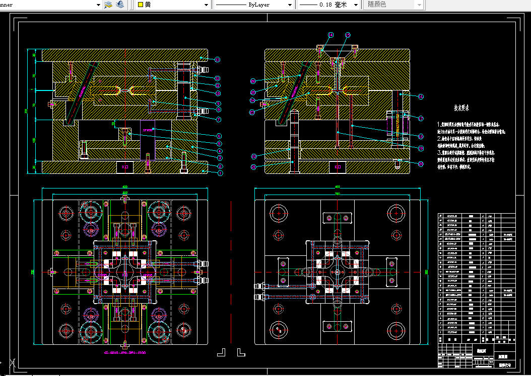 本次设计中,采用了AutoCAD二维设计软件绘制注塑模具的二维装配图与非标零件图,采用了三维软件绘制模具的整体装配图与其他零件的三维细节,在计算机辅助设计中,还采用了专业的插件与moldflow软件对浇口位置与成型特征来进行辅助设计,即避免了前期考虑的不充分又提高了效率又满足设计需求。