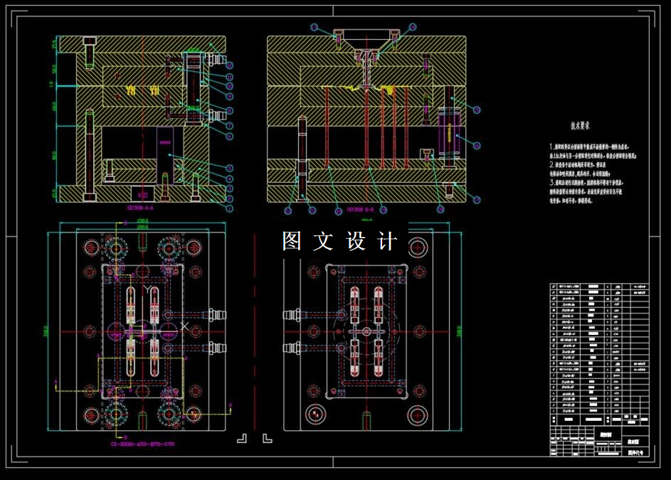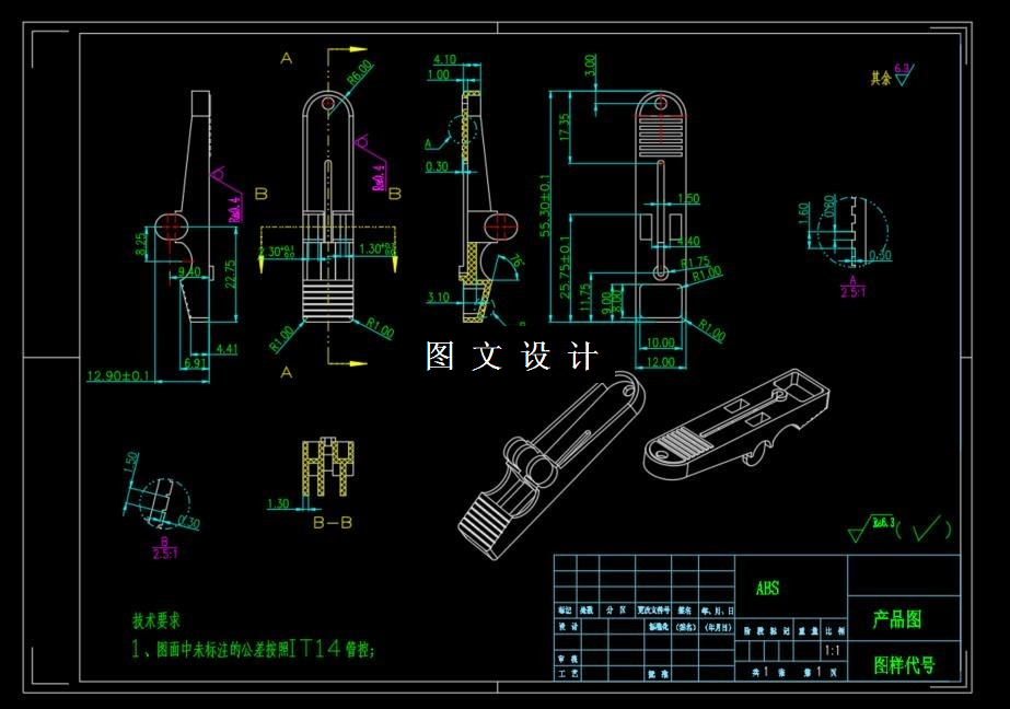 本次设计首先根据塑件的外形结构特点,选择了合适的热塑性高分子材料类型,分析注塑工艺,进行了模具型腔出模数量的确定,完成了流道浇注系统的设计,进行模具温度调节冷却水道设计,对于成型零件的设计方面,选择了分型面,确定了型芯和型腔的结构设计和成型尺寸的计算与校核。顶出系统的合理布局能够实现塑件的顺利脱模。选用了标准GB模架系统来实现标准模块设计与制造,缩短制造周期。 在完成模具设计之后,通过查注塑模具设计指导手册,选择了相关注塑机,确定了注塑机基本型号,根据注塑机参数表进行校核与计算,包括注塑量,注塑压力,锁模力,安装尺寸等数据。