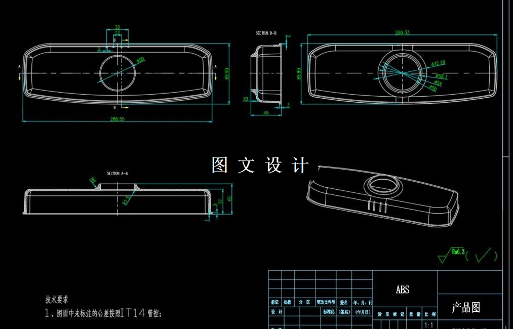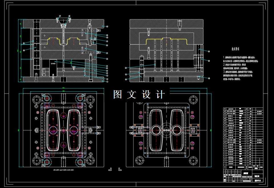本次设计首先根据塑件的外形结构特点,选择了合适的热塑性高分子材料类型,分析注塑工艺,进行了模具型腔出模数量的确定,完成了流道浇注系统的设计,进行模具温度调节冷却水道设计,对于成型零件的设计方面,选择了分型面,确定了型芯和型腔的结构设计和成型尺寸的计算与校核。顶出系统的合理布局能够实现塑件的顺利脱模。选用了标准GB模架系统来实现标准模块设计与制造,缩短制造周期。 在完成模具设计之后,通过查注塑模具设计指导手册,选择了相关注塑机,确定了注塑机基本型号,根据注塑机参数表进行校核与计算,包括注塑量,注塑压力,锁模力,安装尺寸等数据。