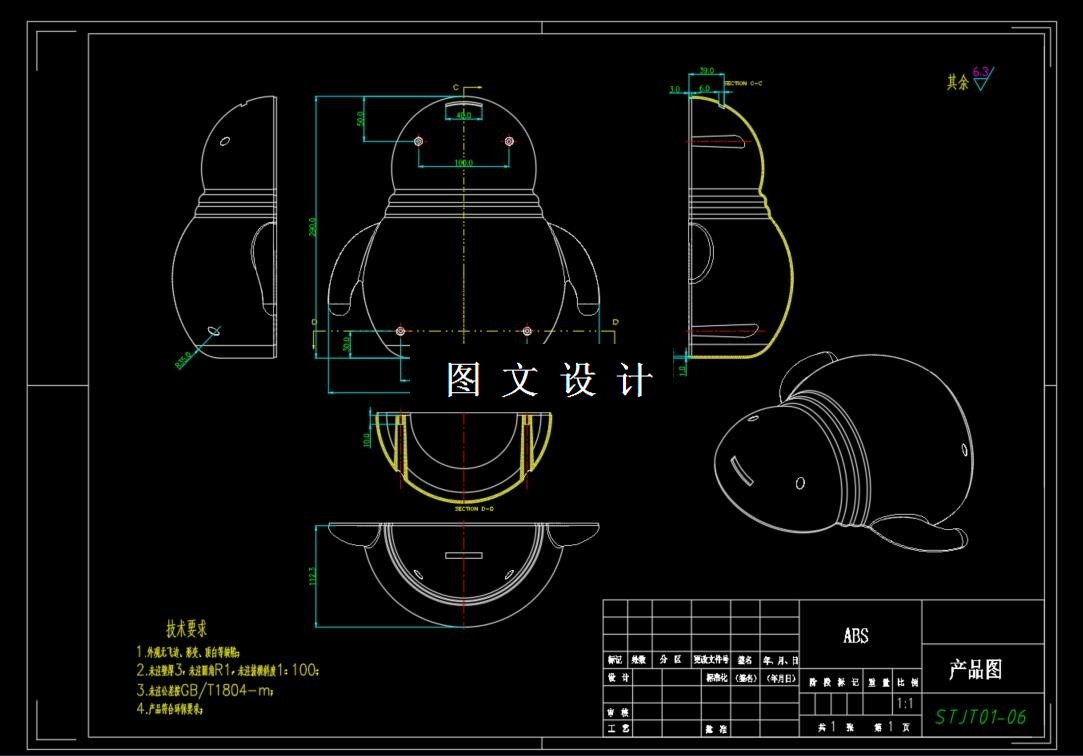 本课题研究的是玩具后壳模具,玩具后壳为我们日常生活中常见的公用设施,玩具后壳要求有比较高的强度和一定的柔韧性,所以我们选择了力学综合性能比较好的塑料材料ABS。在设计过程中,我们先对玩具后壳塑件进行工艺分析,来选取合适的模架和注塑机等等。经过塑件工艺性分析,该塑件为大型塑件,相应地需要设计大型模具和大型注塑机。该模具适合采用一出一腔模具结构,采用单点侧浇口注胶,塑件脱模取出后,浇注系统凝料与塑件人工切除。