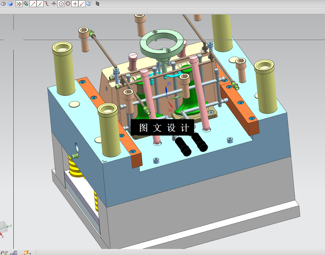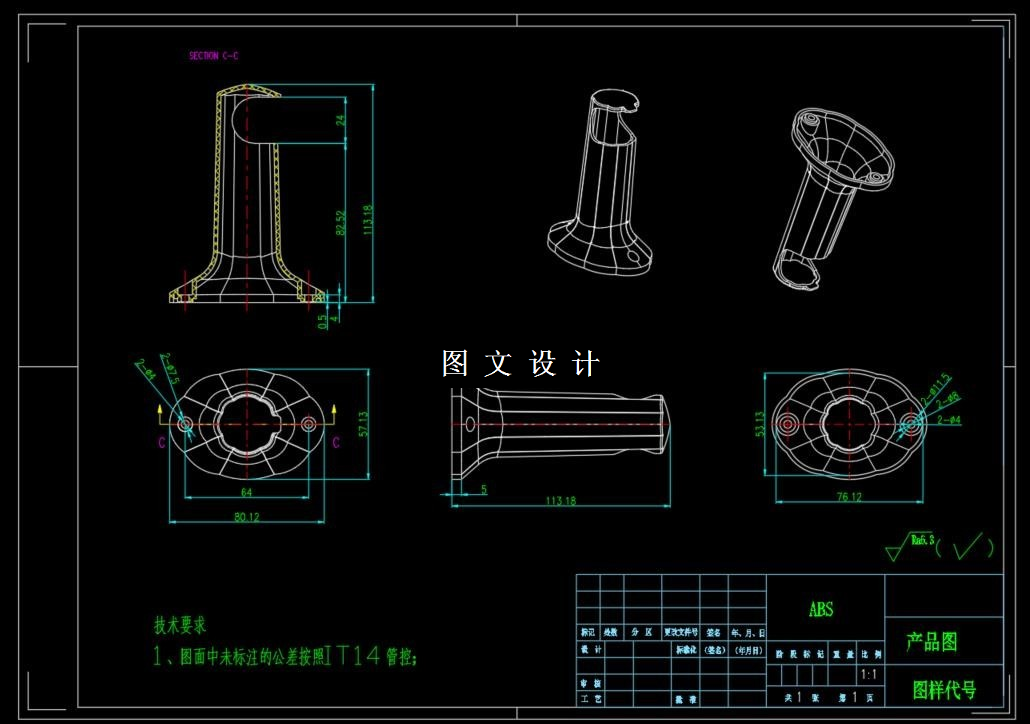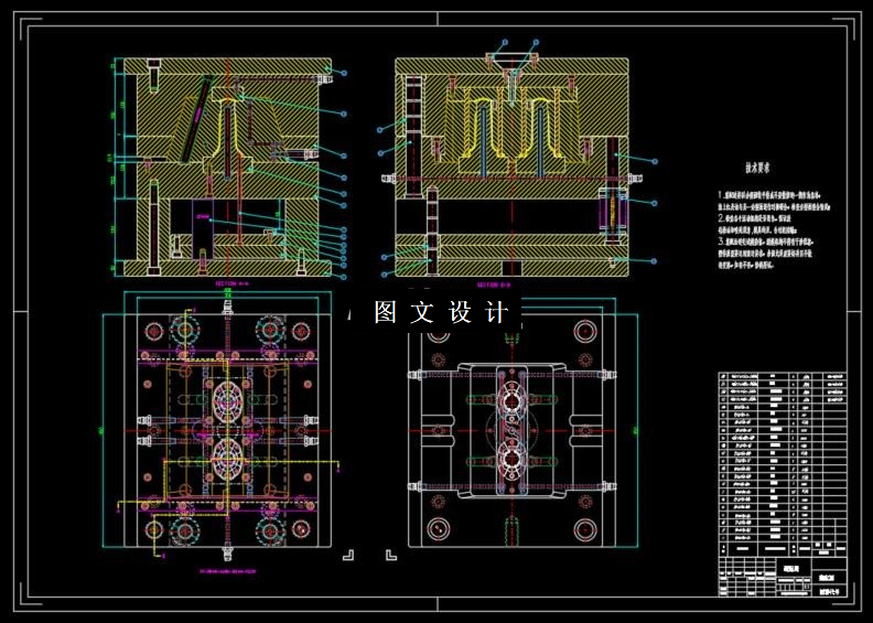 本次设计首先根据塑件的外形结构特点,选择了合适的热塑性高分子材料类型,分析注塑工艺,进行了模具型腔出模数量的确定,完成了流道浇注系统的设计,进行模具温度调节冷却水道设计,对于成型零件的设计方面,选择了分型面,确定了型芯和型腔的结构设计和成型尺寸的计算与校核。顶出系统的合理布局能够实现塑件的顺利脱模。选用了标准GB模架系统来实现标准模块设计与制造,缩短制造周期。 在完成模具设计之后,通过查注塑模具设计指导手册,选择了相关注塑机,确定了注塑机基本型号,根据注塑机参数表进行校核与计算,包括注塑量,注塑压力,锁模力,安装尺寸等数据。
