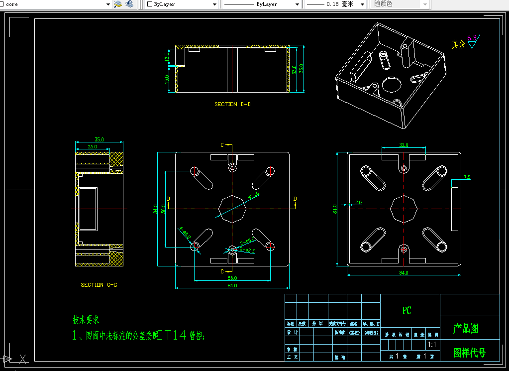 本文是关于开关底盒注塑模具的设计,塑件虽然不是很复杂,但其设计的难点在于侧向抽芯机构和浇注系统的设计。本次设计主要使用UG8.5软件,结合生产实践来设计开关底盒注塑模具的整体结构,通过对塑件形状、尺寸等方面的分析来确定其工艺。主要包括分型面的选择,浇注系统的设计,成型零件的计算,侧向抽芯机构的设置,顶出机构和冷却系统的设计等,此外还对其脱模力进行计算,并选择合适的注塑机。本次设计使用UG8.5,胡波外挂来进行模架、螺钉、顶杆等零件的选取,设计安装完成后,直接导出2D装配图及相关零件图,大大缩短了设计时间。
