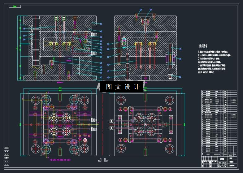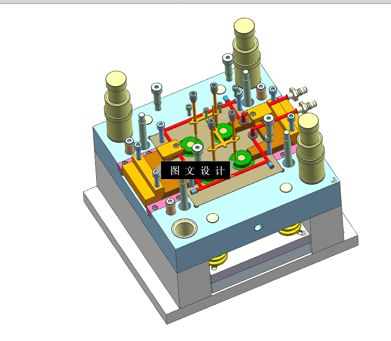 分析完产品本身以后首先需确定该产品的分型面,这一步至关重要,通常采用产品最大端面处为分型面。然后再用UG测量出该产品的最大尺寸多少,结合实际确定出一模几腔满足实际加工要求,经过综合分析为一模四腔的型腔布局,布局规则和均匀,然后选择合适的模架即可。流道尽可能的设计在塑件中间,保证其良好的充填性,本次采用点浇口。本次设计的产品难度和结构一般,就利用分型面自然排气,不用单独设计排气系统。