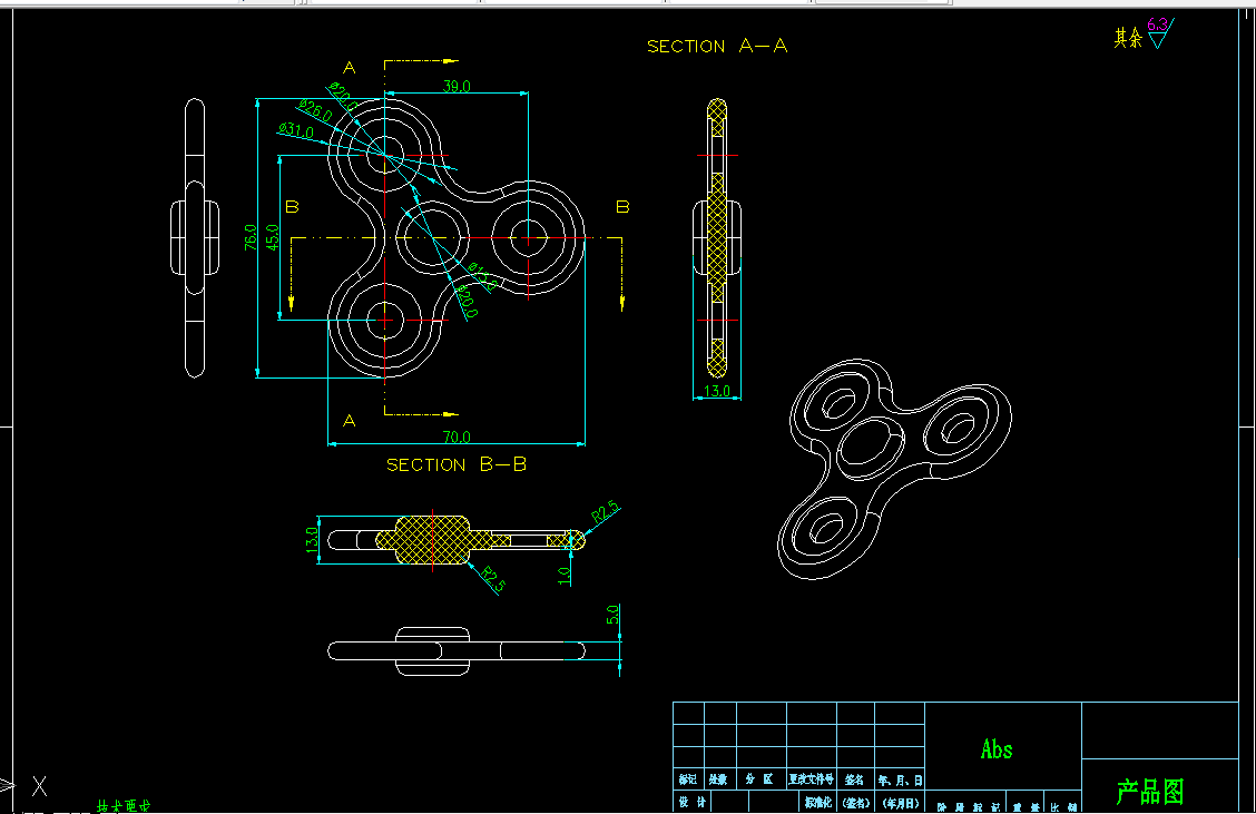 关键词: 多型腔(more caviy) 指尖陀螺 CAD(制图)