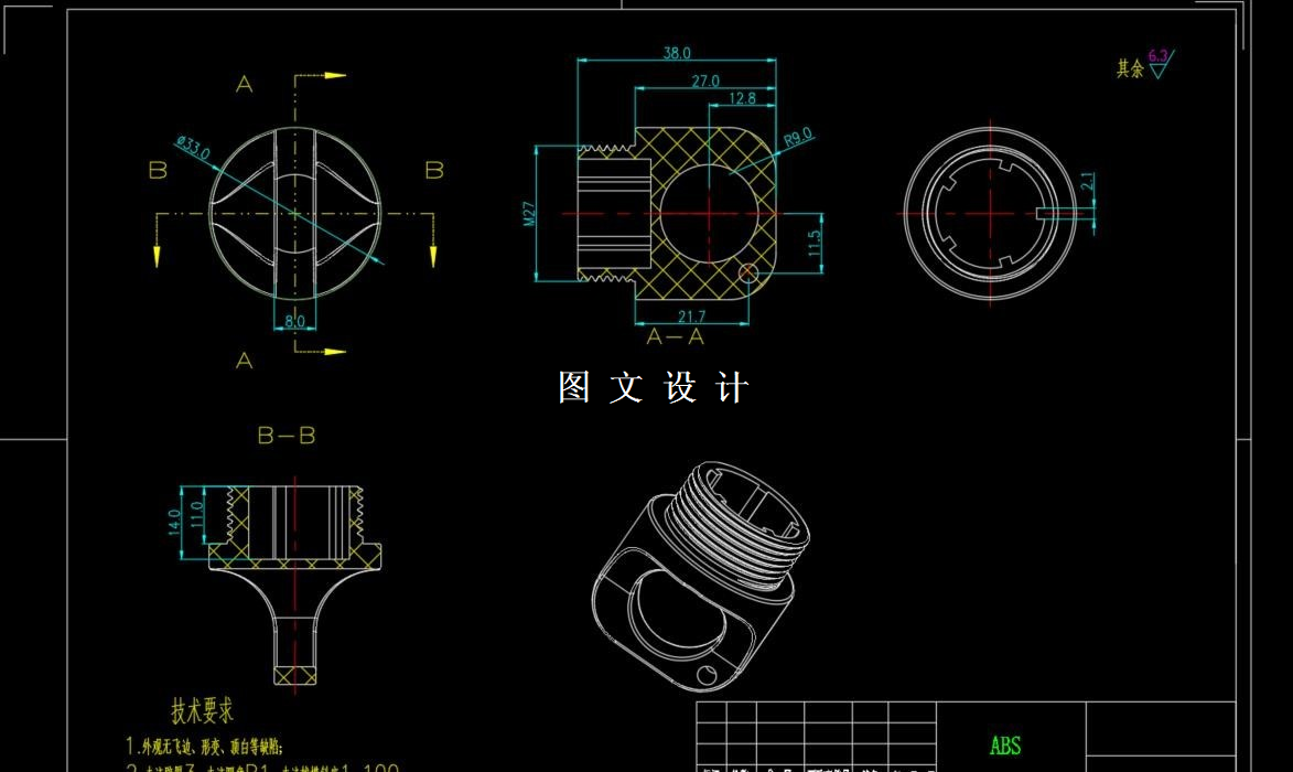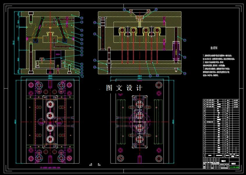 在完成全套的模具结构设计之后,对其生产所需的注塑机进行了选择与校核,其中校核项目包裹注塑量、注塑压力、锁模力、安装尺寸、顶出行程等内容。 本次设计中,采用了计算机辅助设计软件,其中包括二维设计软件AutoCAD绘制模具的总装图与非标的零件工程图,采用了三维软件进行了塑件的建模与整体装配建模