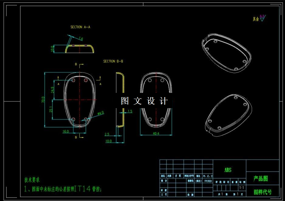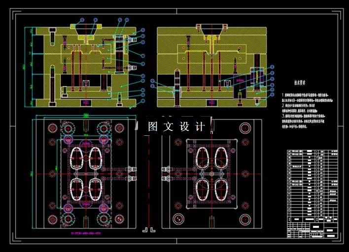 本次设计的产品为电器塑料底板,具有重量轻,强度高,耐腐蚀,易清洁等 特点,为大批量生产产品。本次设计在针对产品进行工艺性分析后,确定模具分 型面、 型腔数目、 浇口形式、 位置大小; 其中最重要的是确定型芯和型腔的结构, 以及它们的定位和紧固方式。此外还进行了脱模机构的设计,合模导向机构的设 计,冷却系统的设计等。