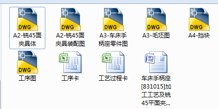 车床手柄座的加工工艺规程和铣φ45端面的工艺设计、工序设计以及专用夹具的设计三部分。在工艺设计中要首先对零件进行分析,了解零件的工艺再设计出毛坯的结构,并选择好零件的加工基准,设计出零件的工艺路线;接着对零件各个工步的工序进行尺寸计算,关键是决定出各个工序的工艺装备及切削用量;然后进行专用夹具的设计,选择设计出夹具的各个组成部件,如定位元件、夹紧元件、引导元件、夹具体与机床的连接部件以及其它部件;计算出夹具定位时产生的定位误差,分析夹具结构的合理性与不足之处,并在以后设计中注意改进。