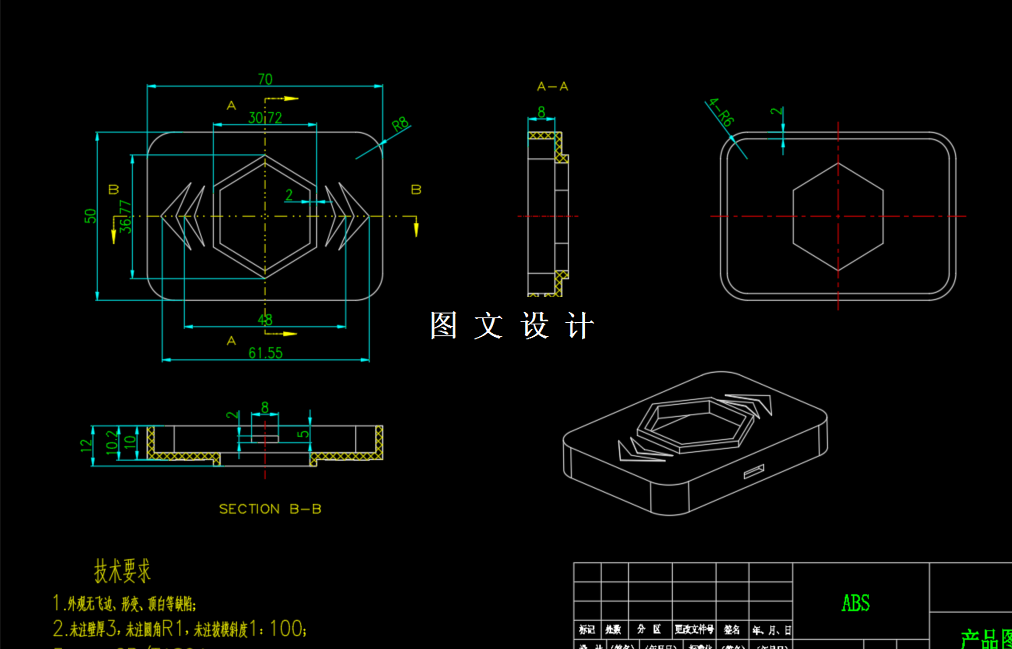 本文是端盖注塑模具设计的详细过程,进行了脱模机构的设计,合模导向机构的设 计,冷却系统的设计等。最后绘制完整的模具装配总图和主要的模具零件图及编 制成型零部件的制造加工工艺过程卡片。实践证明:该模具结构合理、可靠,并 能保证产品质量,对此类注射产品的模具设计有参考价值。