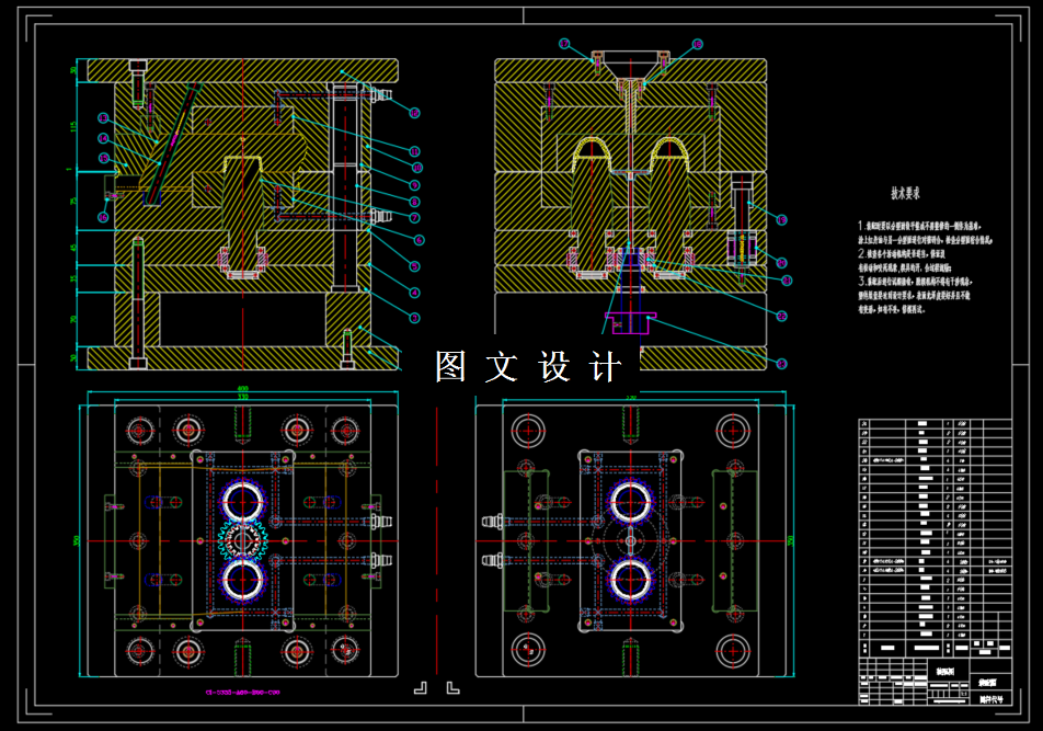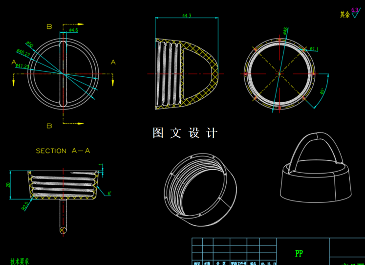 本次设计的产品为水杯盖,具有重量轻,强度高,耐腐蚀,易清洁等 特点,为大批量生产产品。本次设计在针对产品进行工艺性分析后,确定模具分 型面、 型腔数目、 浇口形式、 位置大小; 其中最重要的是确定型芯和型腔的结构, 以及它们的定位和紧固方式。此外还进行了脱模机构的设计,合模导向机构的设 计,冷却系统的设计等。