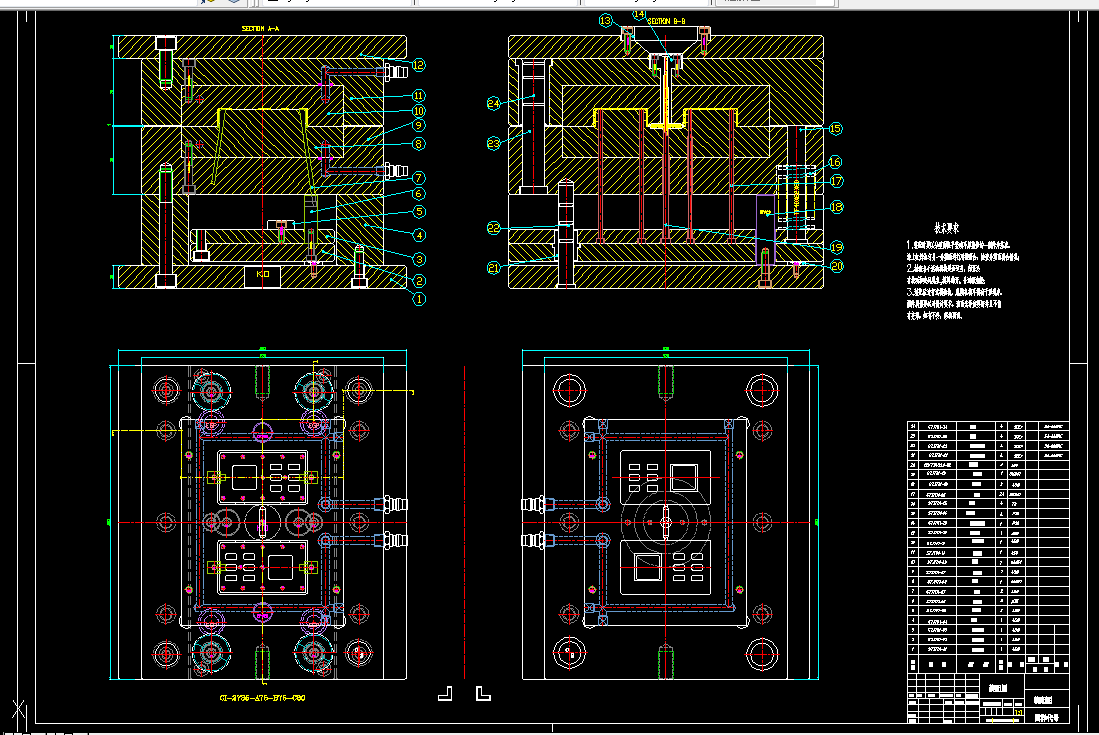 本次主要设计是对仪表盖注射模的设计, 重点对塑件的成型原理、原料选用和注射技术进行分析。通过根据形状、尺寸、精度及表面质量要求的分析结果,确定所需的模塑成型方案,制品的后加工、分型面的选择、型腔的数目和排列、成型零件的结构、浇注系统等。该塑件有内螺纹,需两次分型。故设计中主要解决了分型面的选择,型腔数目的确定,脱模机构的设计.采用了二次脱模机构来脱模,保证塑件能顺利的成型出模。