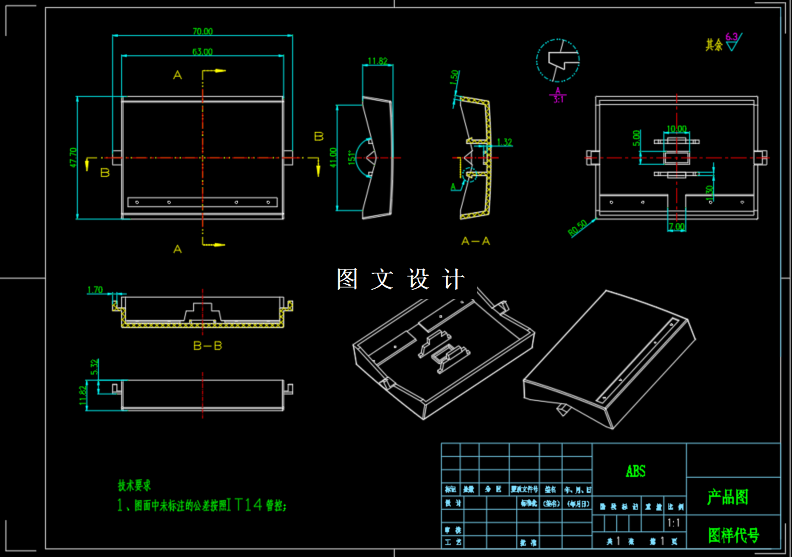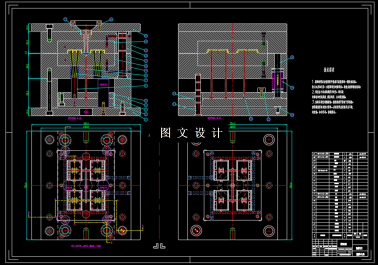 本说明书还详细叙述了模具结构方案,包括确定分型面、成型零部件的结构设计、脱模机构、合模导向机构、冷却系统等等的设计过程。还有重要零件的工艺参数的选择与计算。校核注射模与注射机的关系等。