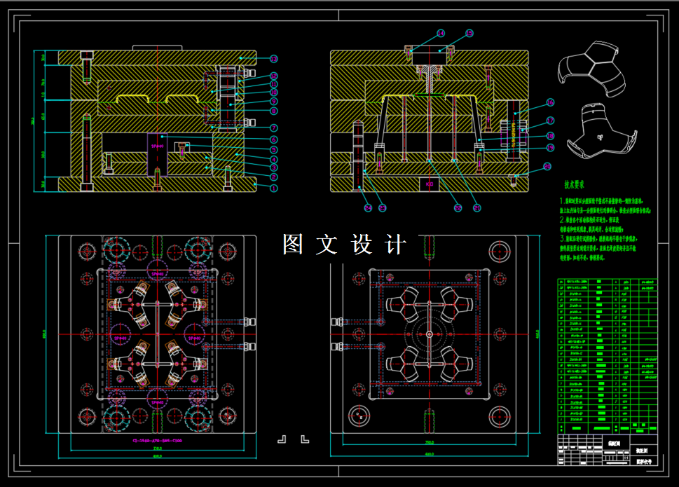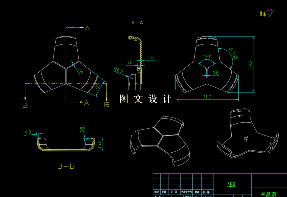 本次设计的三头剃须刀盖注塑模,该设计主要通过对塑件的结构形状及尺寸精度,成型要求来进行的注塑成型工艺的分析,并完成注射模具的设计。该设计需要通过分析的成型工艺包括:PVC塑料的成型特性,塑件的结构特点,表面粗糙度以及脱模的分析要求,以此来确定注射机的选用、型腔的数目、分型面的位置、浇注的方式、分流道的设计、脱模方式等。该次设计的难点是需要进行滑块侧向分型分析,而且是一模四腔的设计,分析确定结构。
