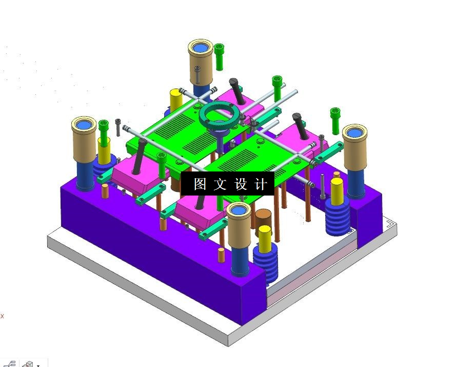 对于本次的路由器底壳产品来说,整体结构尺寸中等,外形结构不是很复杂,产品的侧边有孔结构,需要用到滑块抽芯结构完成产品的成型要求。滑块抽芯机构是模具中比较关键的结构,在此我们使用的是斜导柱滑块抽芯机构,并对产品使用的是一模两腔的排布形式,浇口方式选用的是侧浇口进浇,能够很好的满足充填的需求,确保足够的填充成型。设计主要分析目前市面上的各种塑料模具机构,