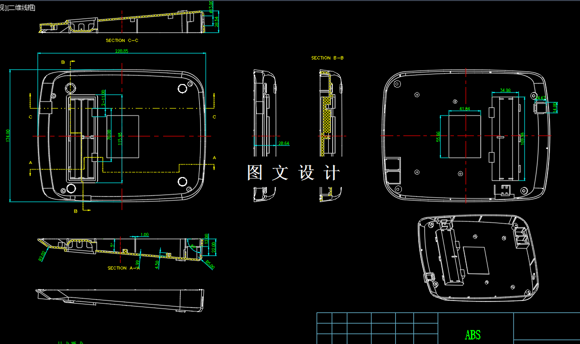 本次设计的产品为电话机机座,具有重量轻,强度高,耐腐蚀,易清洁等 特点,为大批量生产产品。本次设计在针对产品进行工艺性分析后,确定模具分 型面、 型腔数目、 浇口形式、 位置大小; 其中最重要的是确定型芯和型腔的结构, 以及它们的定位和紧固方式。