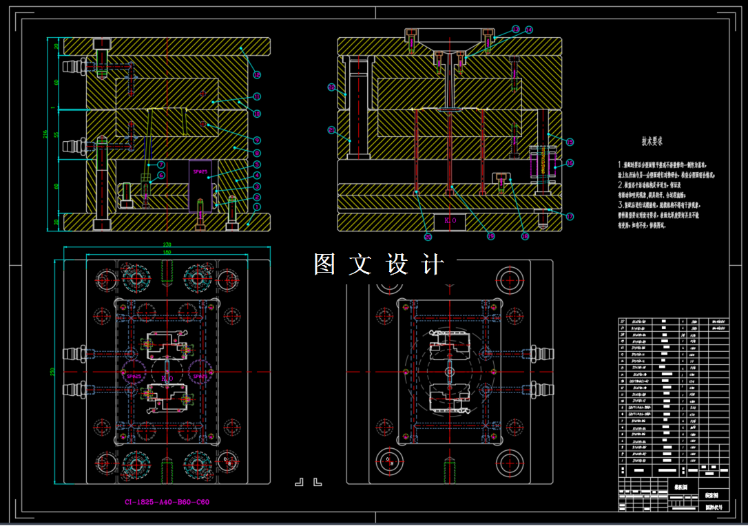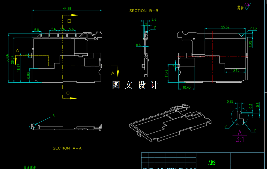 本次设计的产品为手机中板,具有重量轻,强度高,耐腐蚀,易清洁等 特点,为大批量生产产品。本次设计在针对产品进行工艺性分析后,确定模具分 型面、 型腔数目、 浇口形式、 位置大小; 其中最重要的是确定型芯和型腔的结构, 以及它们的定位和紧固方式。此外还进行了脱模机构的设计,合模导向机构的设 计,冷却系统的设计等。最后绘制完整的模具装配总图和主要的模具零件图及编 制成型零部件的制造加工工艺过程卡片