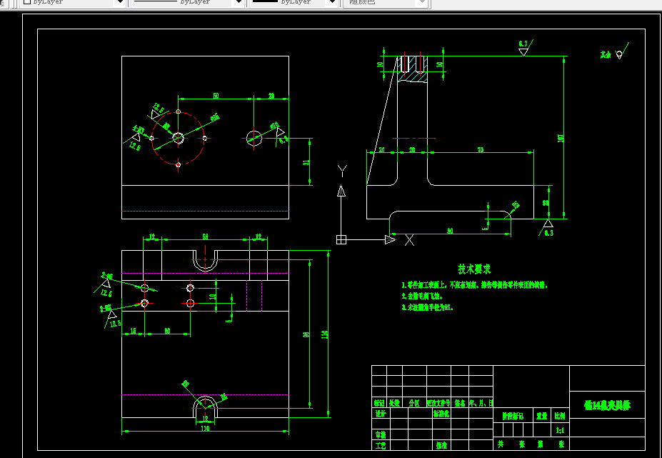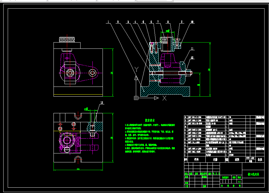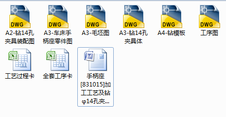 车床手柄座的加工工艺规程和钻φ14孔的工艺设计、工序设计以及专用夹具的设计三部分。在工艺设计中要首先对零件进行分析,了解零件的工艺再设计出毛坯的结构,并选择好零件的加工基准,设计出零件的工艺路线;接着对零件各个工步的工序进行尺寸计算,关键是决定出各个工序的工艺装备及切削用量;然后进行专用夹具的设计,选择设计出夹具的各个组成部件,如定位元件、夹紧元件、引导元件、夹具体与机床的连接部件以及其它部件;计算出夹具定位时产生的定位误差,分析夹具结构的合理性与不足之处,并在以后设计中注意改进。