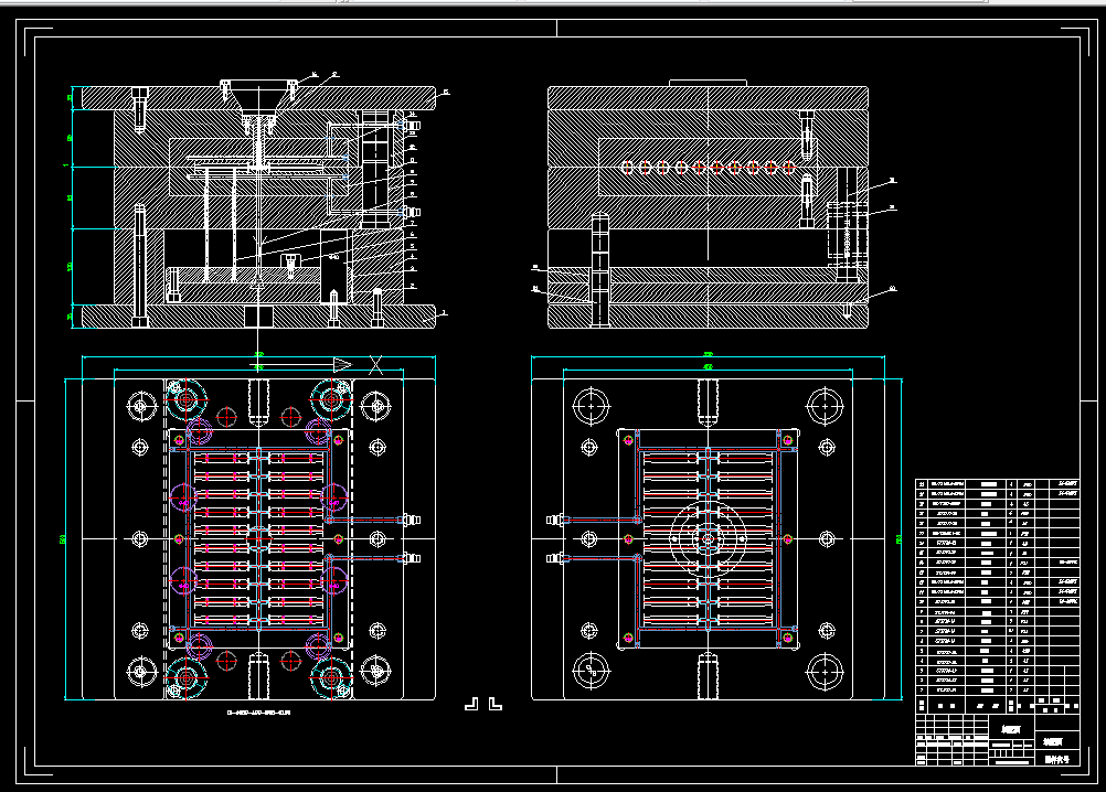 塑料注射模主要用于热塑料制品的成型,已成功的用于成型热固塑性塑料制品,它是塑料制品生产中十分重要的工艺装置。注射模的基本组成是:定模机构、动模机构、浇注系统、导向装置、顶出机构、芯机构、冷却和加热装置、排气系统。