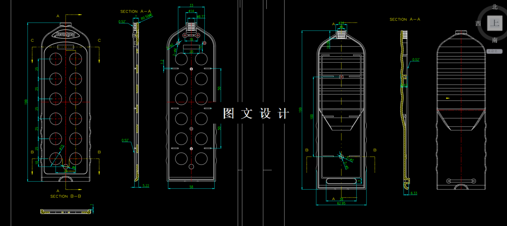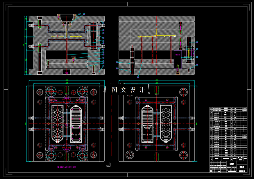 本次设计的主要任务是手控器上下盖注塑模具的设计。也就是设计一副注塑模具来生产手控器上下盖塑件产品,以实现自动化提高产量。针对手控器上下盖的具体结构,通过此次设计,使我对点浇口双分型面模具的设计有了较深的认识。同时,在设计过程中,通过查阅大量资料、手册、标准、期刊等,结合教材上的知识也对注塑模具的组成结构(成型零部件、浇注系统、导向部分、推出机构、排气系统、模温调节系统)有了系统的认识,拓宽了视野,丰富了知识,为将来独立完成模具设计积累了一定的经验.
