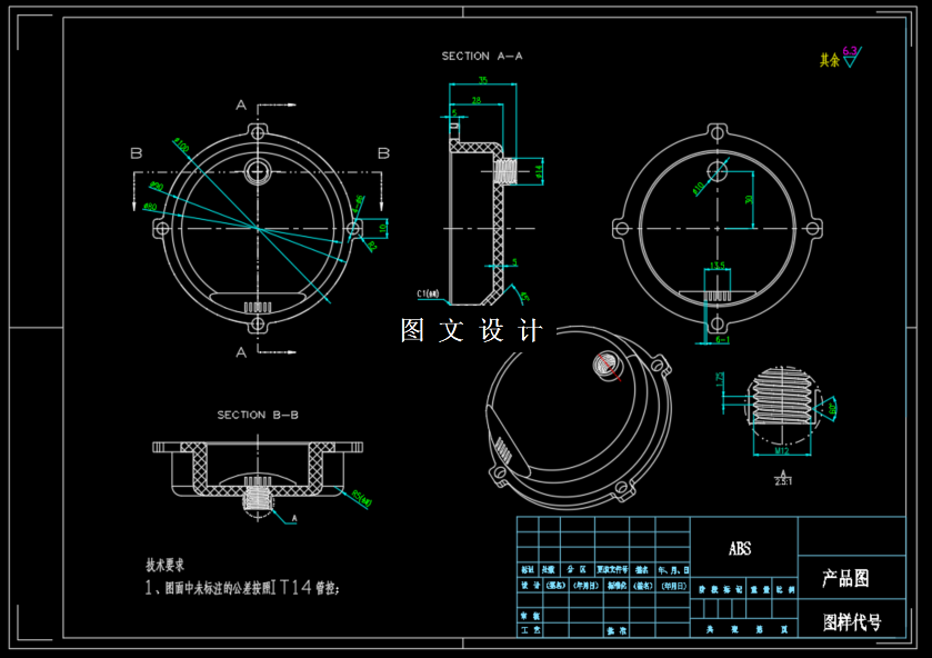 本次设计的产品为端盖,具有重量轻,强度高,耐腐蚀,易清洁等 特点,为大批量生产产品。本次设计在针对产品进行工艺性分析后,确定模具分 型面、 型腔数目、 浇口形式、 位置大小; 其中最重要的是确定型芯和型腔的结构, 以及它们的定位和紧固方式。此外还进行了脱模机构的设计,合模导向机构的设 计,冷却系统的设计等。最后绘制完整的模具装配总图和主要的模具零件图及编 制成型零部件的制造加工工艺过程卡片。
